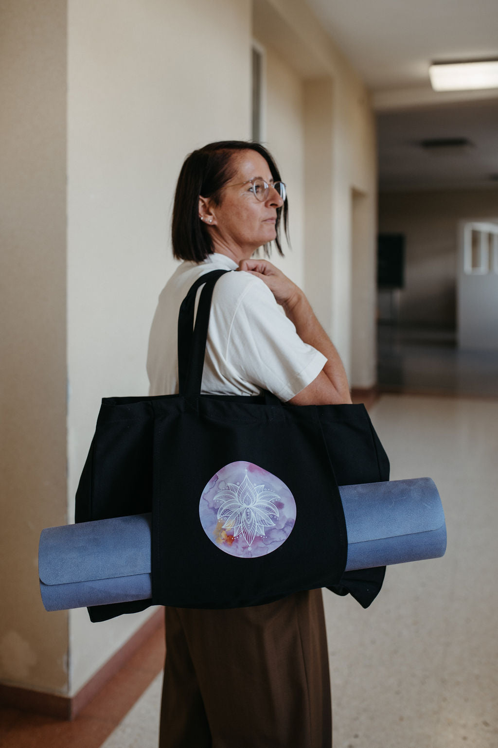 Erlebe Yoga mit Stil . Diese Tasche aus 100 % Bio-Baumwolle ist der perfekte Begleiter für deine Yoga-Sessions.